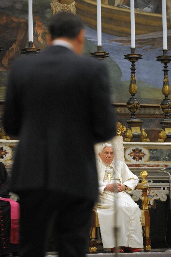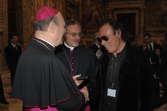 Duecentosessanta artisti nella Cappella Sistina, chiamati di fronte a Papa Benedetto XVI. Da Vadim Ananiev a Claudio Baglioni, da Roberto Vecchioni a Antonello Venditti, dal maestro Ennio Morricone a Marco Frisina, e poi Riccardo Cocciante, Andrea Bocelli. Una pletora di artisti prima in sfilata poi in chiesa, eppure i musicisti più applauditi al passaggio in via della Conciliazione, questa mattina, sono stati i Pooh. Ormai in pensione, e di nuovo insieme in Vaticano. Tra gli attori Raoul Bova, molto ben accolto tra urla e schiamazzi composti, e Claudio Amendola, Terence Hill e Maddalena Crippa, Anna Proclemer, Irene Papas, Monica Guerritore, Pamela Villoresi, Franco Nero e Arnoldo Foa.