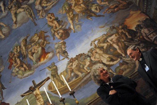 Tra i registi l'immancabile Franco Zeffirelli, Pupi Avati, Mario Monicelli, Marco Bellocchio, Nanni Moretti, Giuseppe Tornatore, Liliana Cavani e Kryzstof Zanussi e i fratelli Taviani. Tra i 260 c'erano anche ballerine di fama mondiale come Carla Fracci e Liliana Cosi, oltre ai registi teatrali come Maurizio Scaparro e Luca Ronconi. Tanti, puntuali, arrivati alle 11. L'arte nella Cappella Sistina per un incontro fortemente voluto dal presidente del pontificio consiglio della cultura, monsignor Gianfranco ravasi.